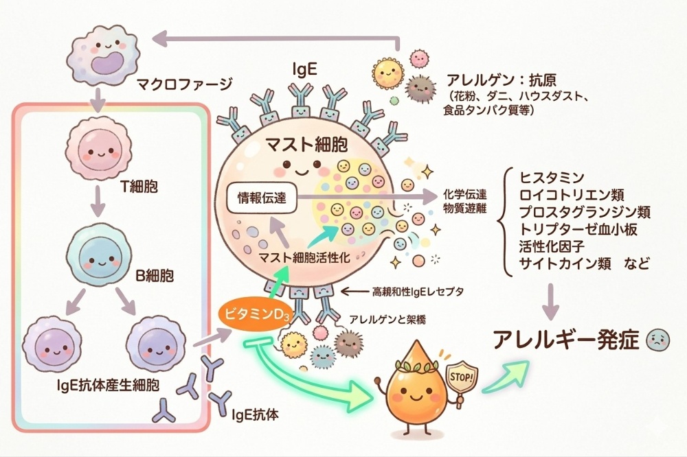👉腸内環境 → 免疫バランス → マスト細胞の反応 → アレルギー
