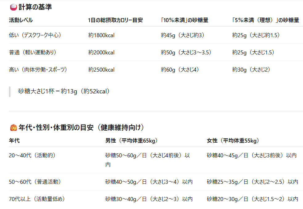 🧮1日の糖質量の目安(厚生労働省・栄養学データより)